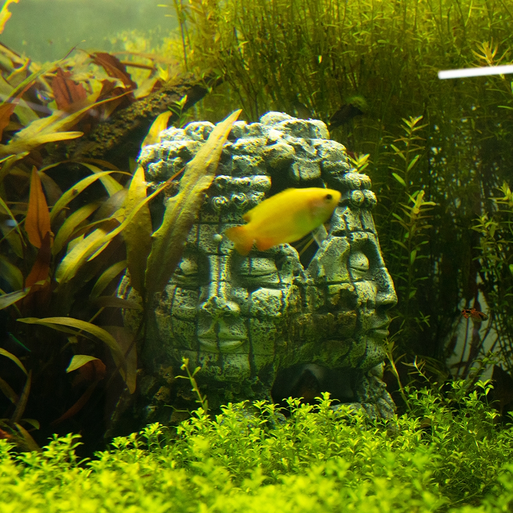 Lavet af polyresin (syntetisk harpiks), detaljeret fremstillet; fuldstændig ikke-giftig, neutral over for biologisk balance; egnet til ferskvand eller saltvand; fast farve, lette farveændringer er mulige efter længere tids brug; skyl med lunkent vand før brug.