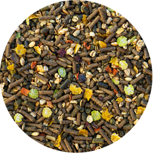 | Composition | Timote græs, Avner af hørfrø, Havreklid,Rapsskrå, Majsmask, Poppet byg, byg, majs, Hestebønneskaller, Isomalt, Rapsolie, Hvedeklid, Ærteflager, Sojabønner(non GMO), Spelt, Johannesbrød, Gulerodsflager, Hørfrø, Rødbedeflager, Ærter, Cikorie |