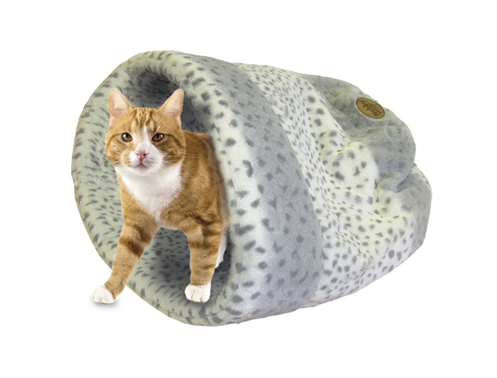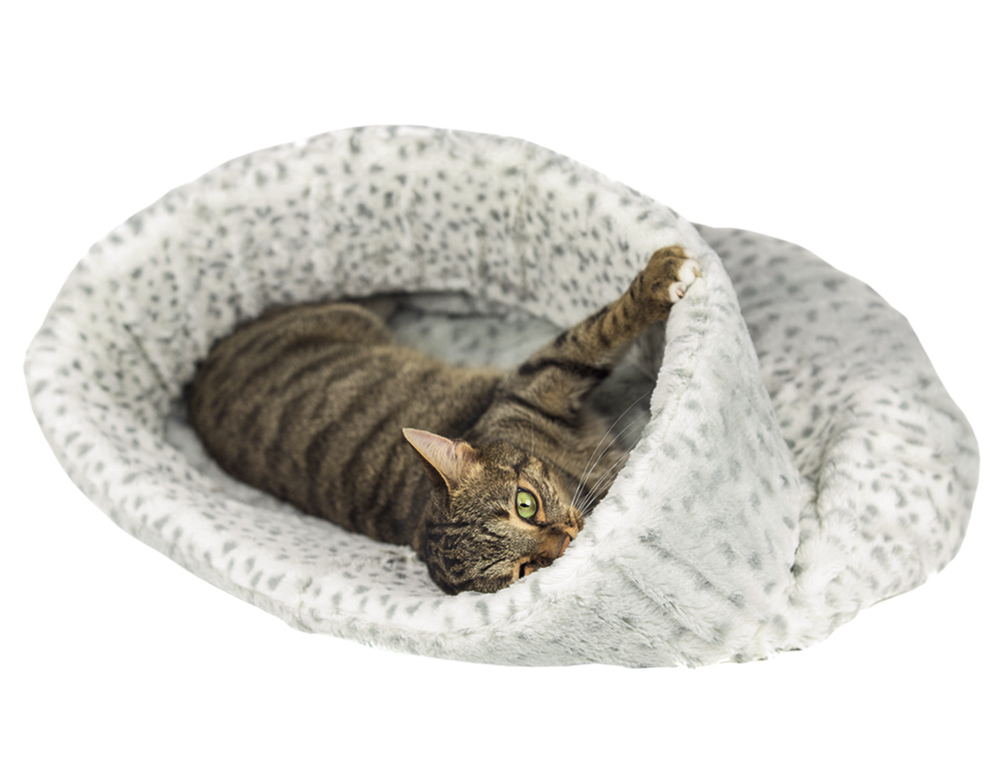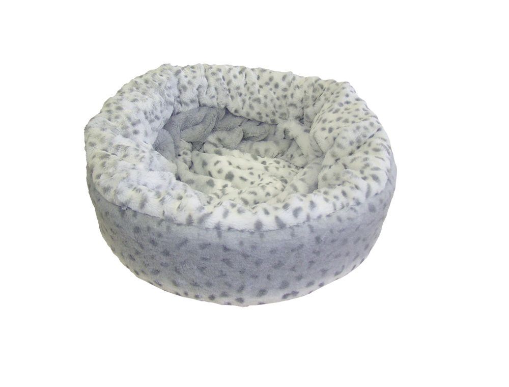 [0] => Leopardgrå; blødt plys; kan omdannes til en seng; forstærket indgang med skum; vaskbar op til 30°C, kun håndvask; mikrofiber
