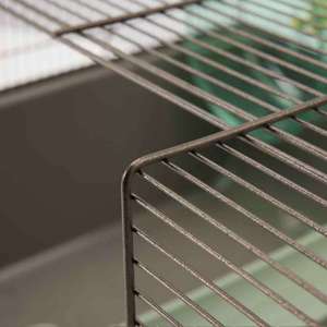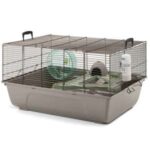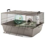 Robust hamsterhjem; med ekstra stor frontklap; plastbakke; brunlakeret metalnet; speciel trådbehandling; inkl. tilbehør; trådafstand 9,5 mm; størrelse 67 x 49 x 36,5 cm