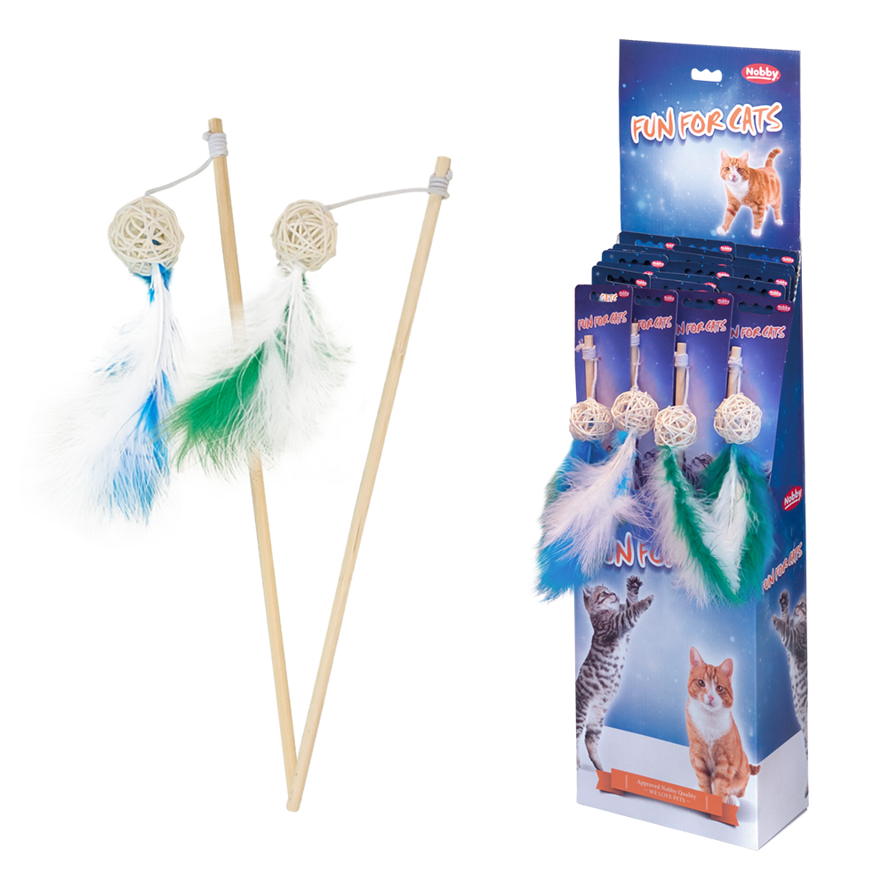 [name] => Display, Træpind med rattanbold og fjer 12 stk