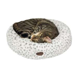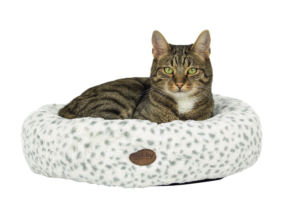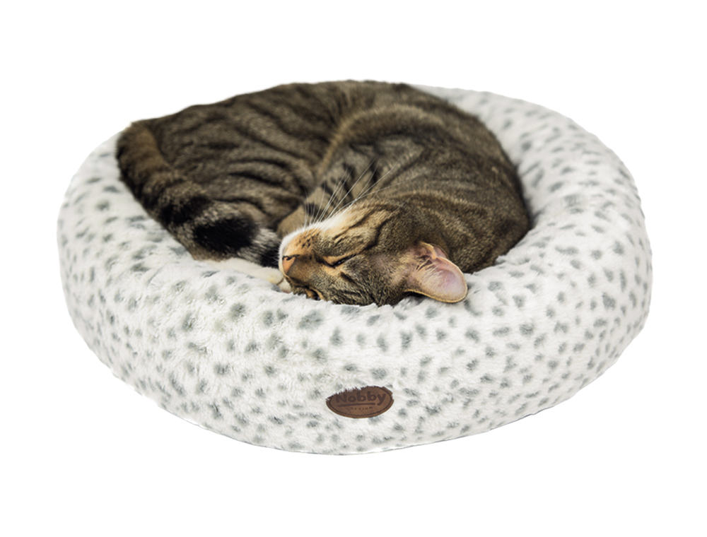 [0] => Leopardgrå; blød plys (100% polyester); betræk helt aftagelig med lynlås; fyld af bomuldsvat, vaskbar op til 30 °C, håndvask