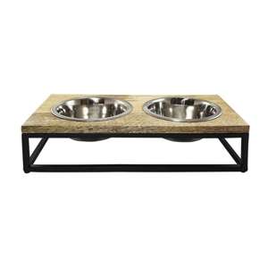 Med mangotræ og robust metalramme; inkl. 2 aftagelige skåle i rustfrit stål; sikker stand takket være skridsikre fødder