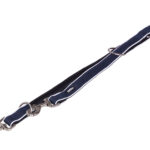 Nylon-neopren med reflekterende striber; metaldele i mat sølv; blød neoprenforing; lukning øverst lavet af metal; længde: 200 cm, justerbar i tre positioner
