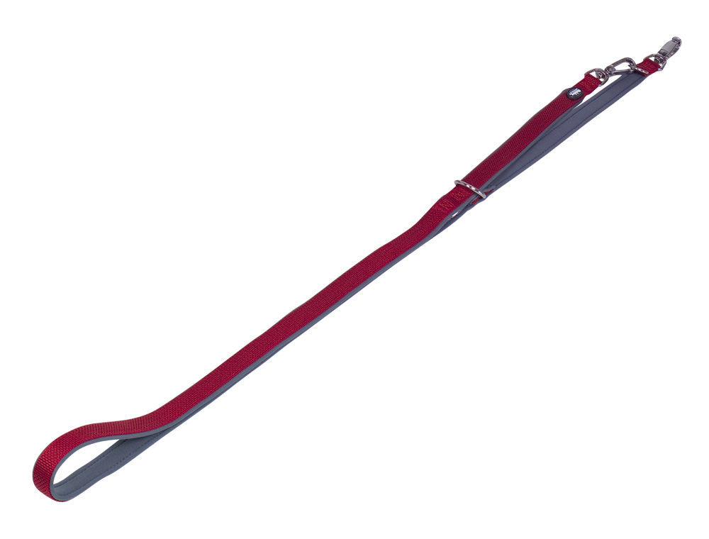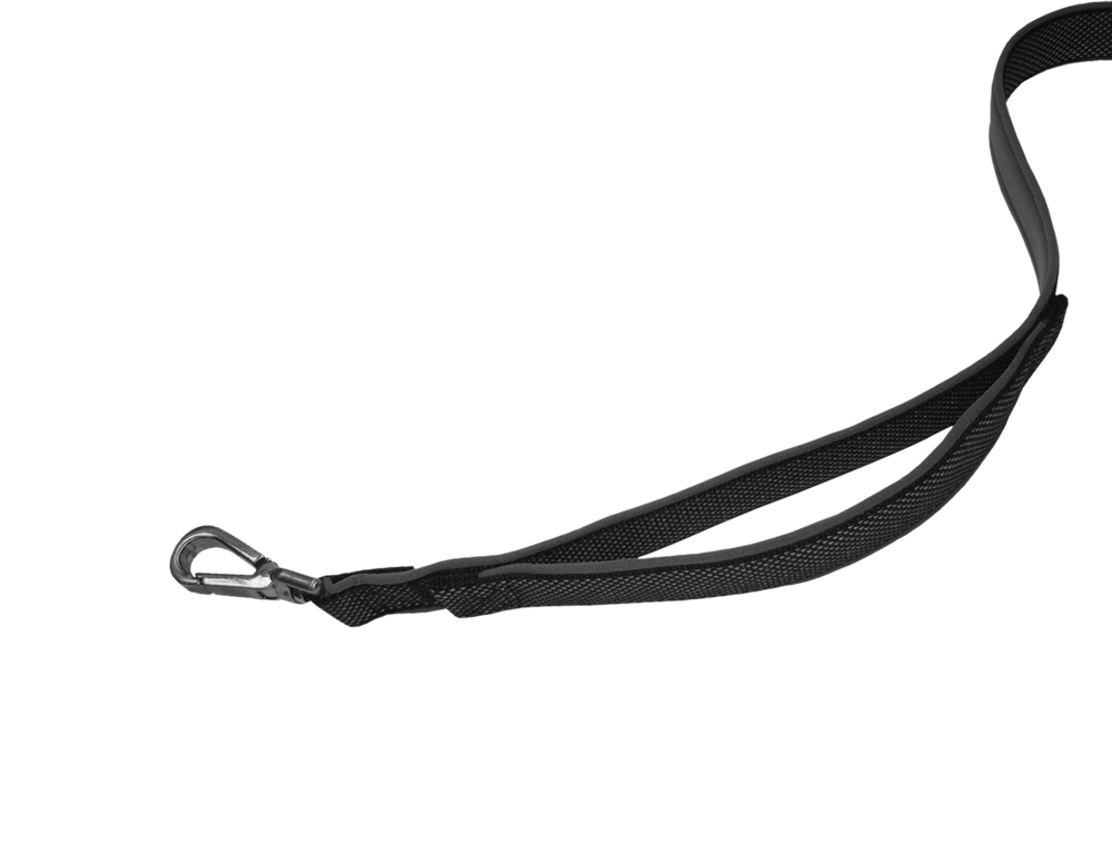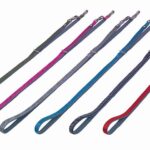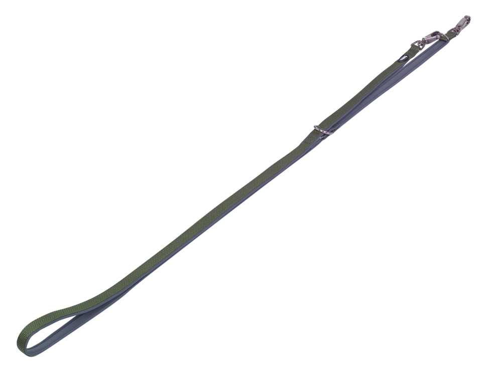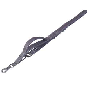 Lækker Dressurline i Nylon og neopren. Metaldele i mat sølv. Blød greb med neopren foring.