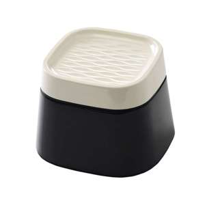 Ergo Cube skål til foder i størrelsen 22x22x16 cm, hævet og med en lav kant, som er særligt velegnet til ældre katte og katte med gigt. Rillerne i skålen hjælper med at absorbere mad eller vand og er også velegnet til flade ansigtskatte som perserkatte eller britiske katte.