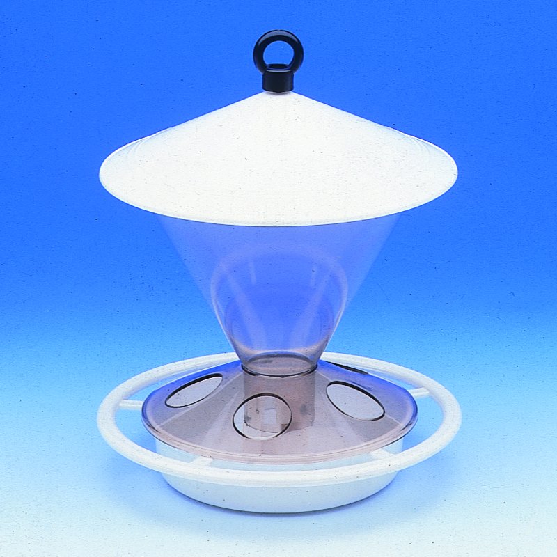 [0] => Hængende foder- og vandautomat med en kapacitet på 1 liter.