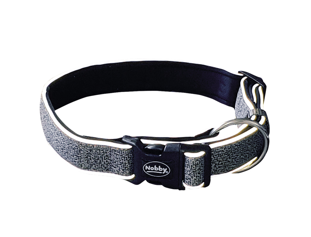 [0] => Nylon-neopren med reflekterende striber; metaldele i mat sølv; blød neoprenforing; lukning øverst lavet af metal; låseteknologi forhindrer overdreven belastning på spændet; justerbar i ubegrænsede positioner