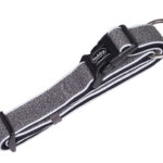 Nylon-neopren med reflekterende striber; metaldele i mat sølv; blød neoprenforing; lukning øverst lavet af metal; låseteknologi forhindrer overdreven belastning på spændet; justerbar i ubegrænsede positioner