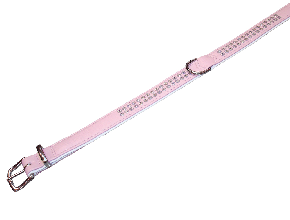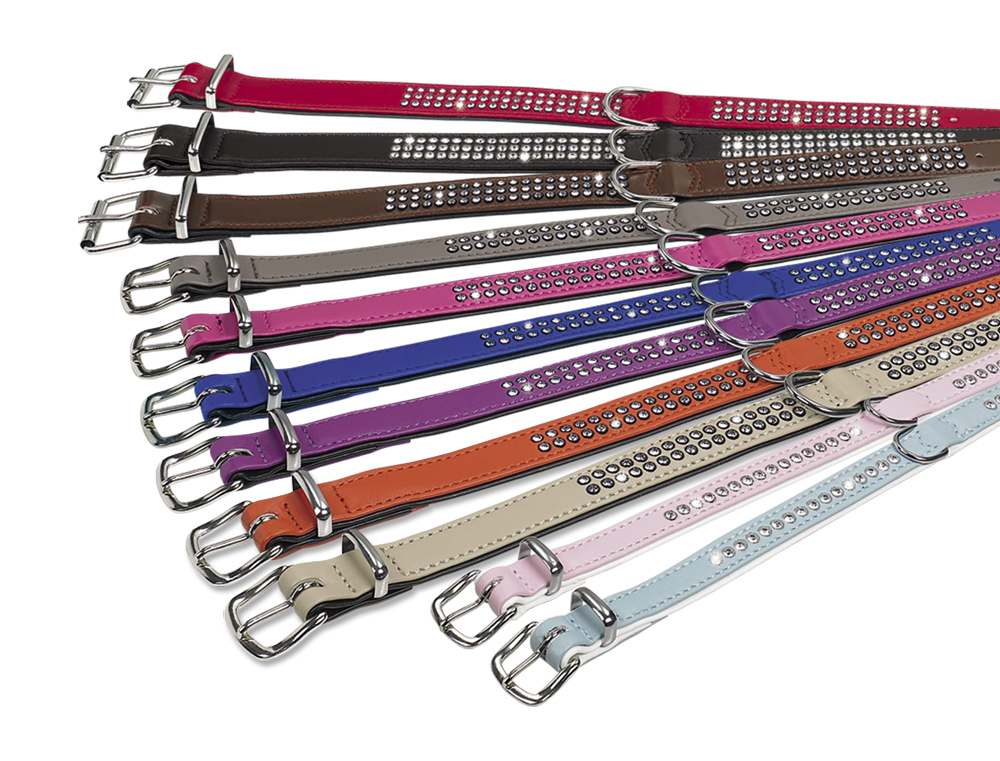 [description] => Flotte halsbånd med rihnesten - lavet af kunstlæder