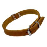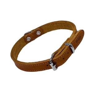 Hundehalsbåndet er fremstillet af ekstremt smidigt fedtlæder, syet med krøllet læder. Det har en moderne ‘vintage’ look med patina dannelse, hvilket giver det karakter og unikke æstetik. Halsbåndet er designet til at blive blødere med tiden og kan i begyndelsen afgive lidt farve. Det er ideelt til at tilføje stil og komfort til din hunds daglige gåture og eventyr.