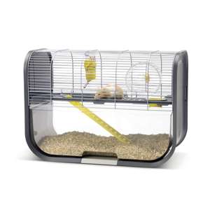 Hamsterbur GENEVA på 60 x 29 x 44 cm med en robust konstruktion, bakke og platform lavet af plastik, øverste del er gråmalet metalhegn, inklusiv udstyr og reduceret transportvolumen. Trådafstanden er 9,5 mm. Denne to-etagers hamsterbur har et moderne design og en unik koncept, der passer til ethvert hjem. Det gennemsigtige plastikbeholder giver dig mulighed for at se dine kæledyr lege rundt i et miljø, der er designet til at stimulere naturlige forhold. Den store legeplads giver din hamster mulighed for at gemme sig, grave og klatre efter hjertets lyst. Geneva er nem at installere og rengøre. Buret er udstyret med en stor frontdør til nem adgang, og den øverste del af buret kan lukkes af fra plastikbeholderen. Leveres med tilbehør.