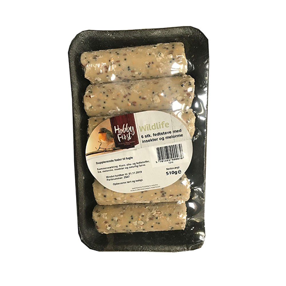 Fedtstaven har et meget højt fedtindhold på 35% og tilsat insekter og melorme til blandingen. Fedtstaven er fuglenes favorit, og sikre masser af liv på fodrepladsen.