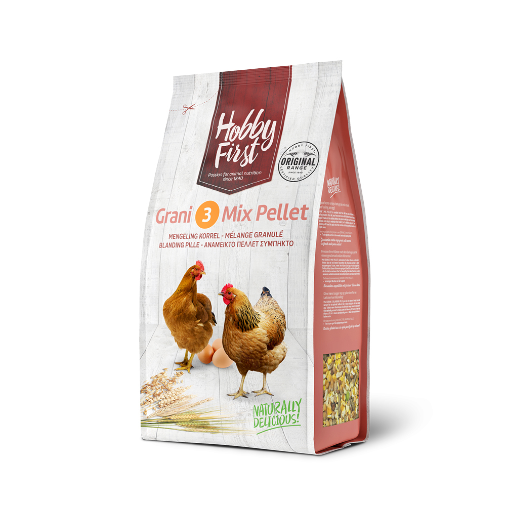 Med GRANI 3 MIX PELLET giver du dine høns et komplet foder, der sørger for et optimalt helbred, hvilket er uhyre vigtigt, nå r dine høns lægger æg. Takket være tilsætningen af pillefoder sørger denne kornblanding for tilstrækkeligt protein for hønen samt lækre æg.