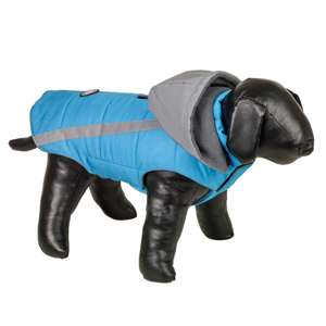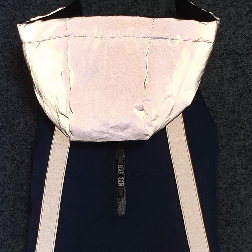Hundefrakke med Hætte og to bRøde striber af højreflekterende materiale