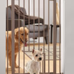 Ekstra stærk dør, kun egnet til voksne hunde; justerbar til åbninger mellem 75 og 84 cm; afstand mellem stængerne 4,5 cm; udvidelser på 7 cm fås separat (maks. 4 udvidelser pr. gate)