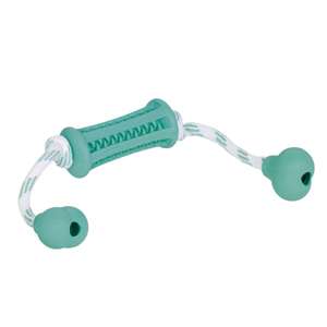 [0] => Hundelegetøj i form af en "Dental Line stick" med reb og myntesmag. Den er robust og hjælper med at pleje hundens tænder og give den sjov ved at tygge på den. Den har særlige pigge til intensiv tandpleje.