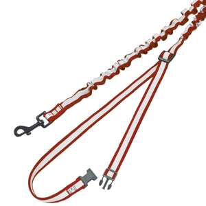 [0] => Nylon løbeline med reflekterende striber; line lavet af strækmateriale (fra livrem eller håndløkke); livrem maks. 105 cm lang