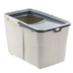 [description] => Bred indgang øverst, også velegnet til store racer; de høje sidekanter forhindrer urin, afføring og kattegrus i at slippe ud; helt hængslet låg, nem at rengøre; med grusskovl; farve: grå; størrelse: 58 x 39 x 38,5 cm