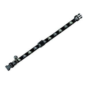 [0] => Justerbart kattehalsbånd med dødningehoved-mønster.