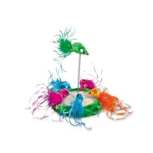 [description] => 5 plys-mus 5 cm med fjer og rasle; 1 plys-mus 7 cm med fjer og rasle; størrelse: Ø 19 x 24 cm