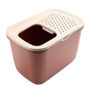 [0] => Indgang ovenfra; ingen kattegrus omkring eller for børn eller hunde; helt aftagelig top; med opbevaringskrog til kattegrus-ske; også til store racer; god accept; nem at rengøre