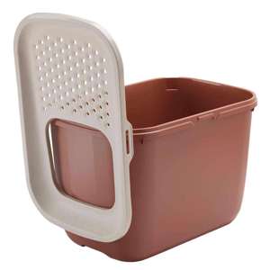 [description] => Indgang ovenfra; ingen kattegrus omkring eller for børn eller hunde; helt aftagelig top; med opbevaringskrog til kattegrus-ske; også til store racer; god accept; nem at rengøre