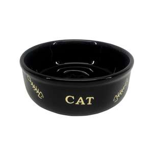 [description] => Keramisk katte skål i sort med guldfarvet print af en fiskeben. Ikke egnet til opvaskemaskine og mikroovn.