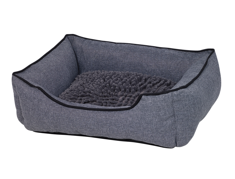 [description] => Grå; yderside i linnedlook, inderside i lang blød mikrofiber; skridsikker; vaskbar op til 30°C, kun håndvask; fyld af vat; mikrofiber.