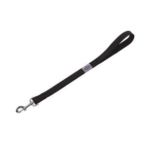 [0] => Kort hundeline i klassisk sort farve, 35 cm lang og 25 mm bred. Perfekt til at holde hunden tæt på dig i forskellige situationer.