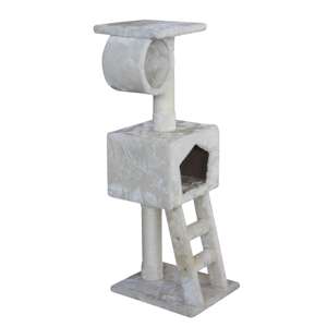 [0] => Kradsetræ "MASSA" i cremefarvet design med en base på 40 x 35 cm og en højde på 111 cm. Udstyret med Ø 9 cm sisalstammer, en hule og flere liggepladser. Betrukket med cremefarvet plys.