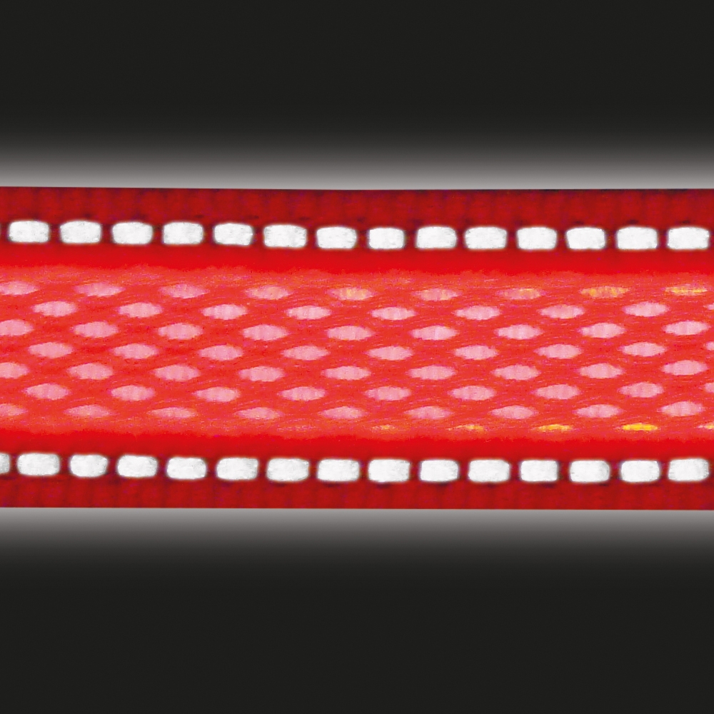 Nylon med meget synlige, indvævede reflekterende striber; stænktæt; batteridrift, klar til brug i op til 4 timer; synlig op til ca. 400 m