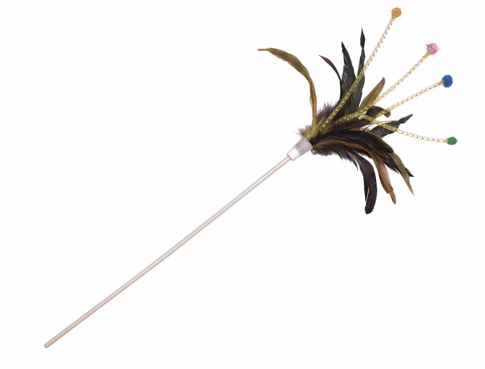 Få din kat til at spinde af glæde med denne legestang på 47 cm med fjer, klokker og elastiske tråde. Fjerene er ca. 18 cm lange og sørger for underholdning i timevis.