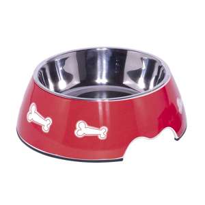 [description] => Rød melamin skål "Bone" på 700 ml med aftagelig rustfri stål skål og anti-slip bund. Skålen er robust, ridsefast og kan vaskes i opvaskemaskinen. Findes i to forskellige farver og tre forskellige størrelser. Ideel til både hjemmebrug og på farten.