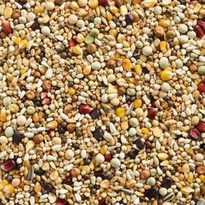 | Composition | Saflørfrø 11% hvid dari 10% Hvid hvede 10% Majs popcorn 9% Grønne ærter 7% Vikker 7% Bønner 6% Milo 6% Byg 5,5% Gule ærter 5% Majs bordeaux 4% Sorte majs 4% Majs cribs 3% Sorte rapsfrø 3% Gul hirse 3% Kanariefrø 3% Hørfrø Stribbede solsikkefrø 1% |
