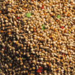 Gul hirse, hvid hirse, kanariefrø, afskallet havre, rød hirse, hamp, tilsat æggesnack