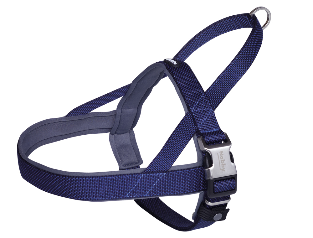 [0] => Nylon-neopren; metaldele i mat sølv; lukning øverst lavet af metal; bryst, nakke og skulder polstret med neopren, vandtæt; optimal komfort; taljebælte justerbar i ubegrænsede positioner; nem og hurtig håndtering; mulighed for at holde fast i selen ved hånden