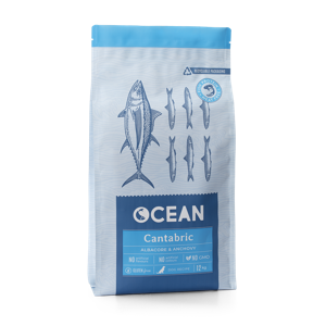 Ocean Cantabric er et komplet og afbalanceret fuldfoder til voksne hunde, sammensat af albacore-tun, ansjos og næringsrig tang. Denne havbaserede kombination tilfører letfordøjelige proteiner, sunde fedtsyrer og essentielle næringsstoffer, som understøtter din hunds sundhed – fra pels til fordøjelse.