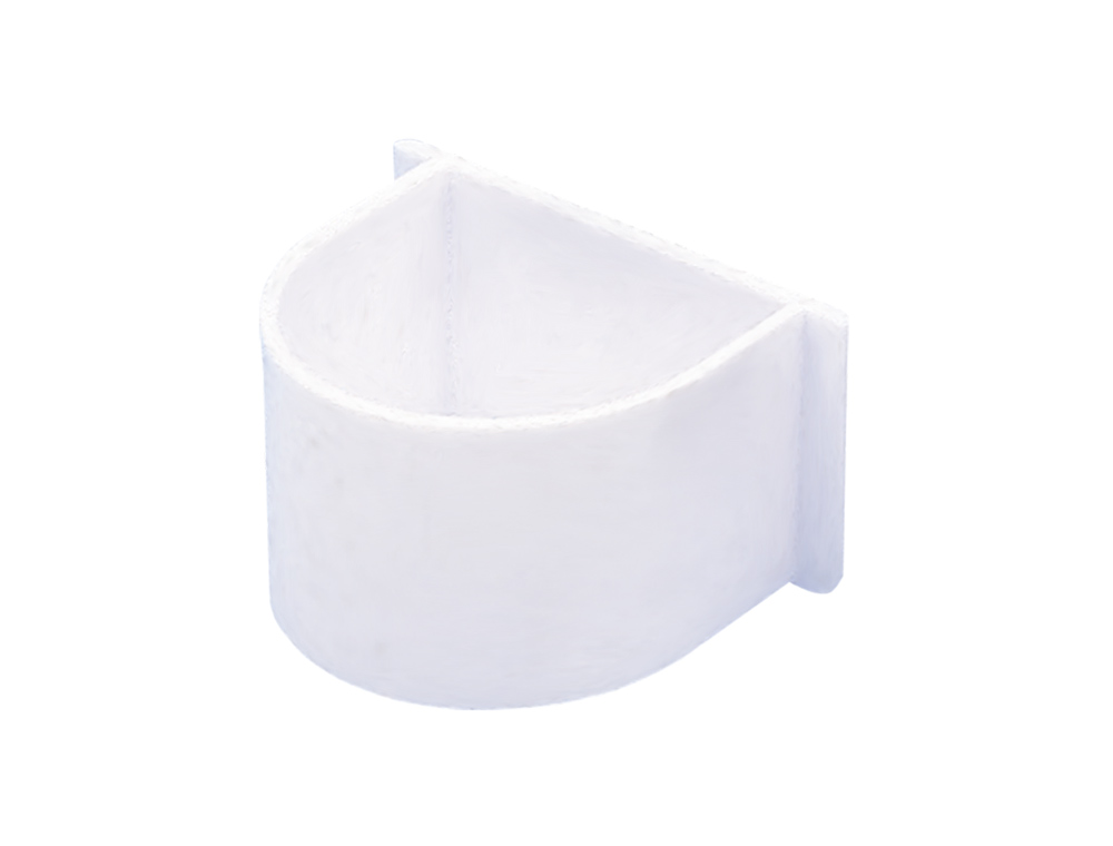 [0] => Hvid oval papegøjeskål til mad og vand.