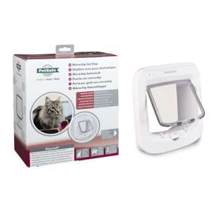 “Pet Safe” Mikrochip kattelem, der kun åbner for “chippede” katte. Kan indstilles individuelt og har en skumringsensor, der kan holde katten inde om natten. Kan også indstilles til “Vet mode”, hvor katten kan komme ind, men ikke ud. Batteridrevet og kan programmeres til op til 40 mikrochips.