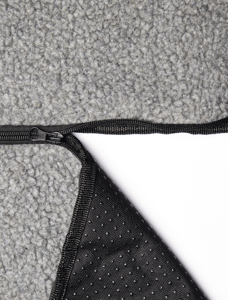 [0] => Sort-grå; beskyttelse mod snavs, dyrehår og fugt; overflade lavet af ekstra blødt fleece (polyester); underside robust Oxford polyester stof (600D); muliggør opdeling af tæppet; vaskbar op til 30°C, kun håndvask