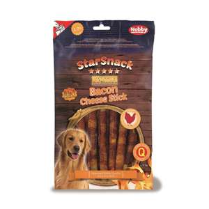 [description] => StarSnack Bacon Cheese Stick til hunde, lavet af 46% kylling, 5,7% ost og med et fedtindhold på 2%. Kommer i en genlukkelig pose på 113g. En sund snack til hunden når som helst.