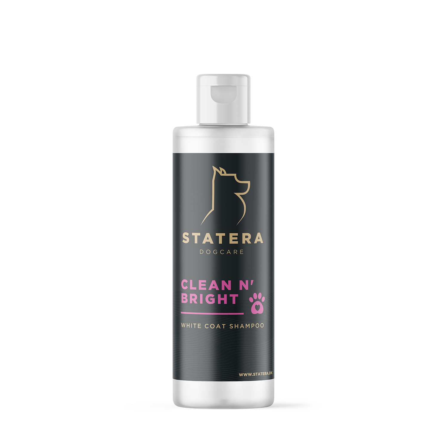 [description] => Plejende og effektiv shampoo, udviklet til hvid og lys pels. STATERA Clean n´ Bright, mindsker gulfarvning af hvid og lys pels og bidrager til lysere/klarere farver. Clean n´ Bright er med sine nøje udvalgte ingredienser og fokus på tilpasning til hundens naturlige pH-værdi i huden, et effektivt og skånsomt valg til hunden.