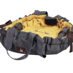 Slidstærk mikrofiber, vaskbar; til op til ca. 6 kg; brugbar som taske, pude og seng; med karabinhage