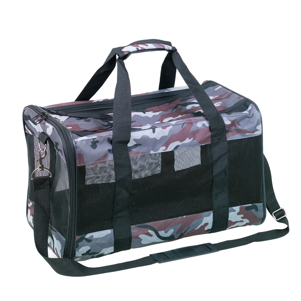 Holdbart mikrofiber; vaskbart; netindlæg på tre sider; til katte og små hunde op til ca. 8 kg; aftageligt, blødt bund med plys dække; aftageligt; med skulderrem og bærehåndtag