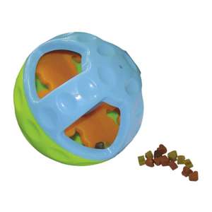 [0] => Thermo Plastic Rubber; tandpleje og sjov ved at tygge; robust; flyder; med åbning til tørre godbidder; med speciel pivelyd