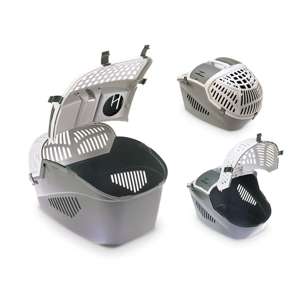 Til hunde og katte; toppen er helt aftagelig; lomme til tilbehør; skjult åbning, hvorigennem du kan berolige dit dyr; kassen kan sikres med sikkerhedsselen