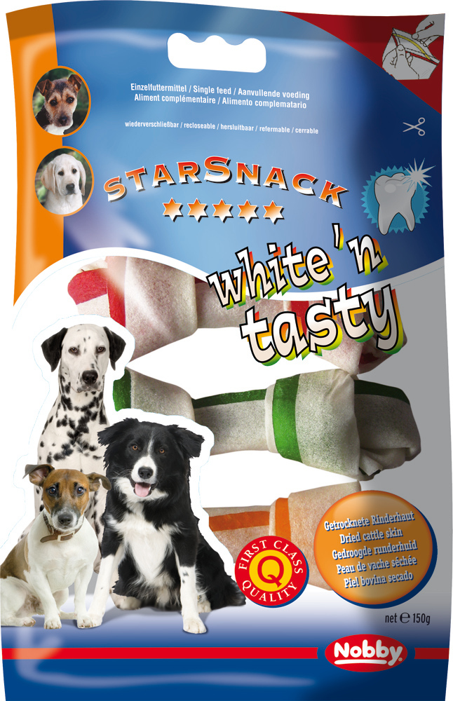 [0] => Naturlig tandpleje for hunde lavet af 100 % råhud. Lavt kalorieindhold på grund af lavt fedtindhold